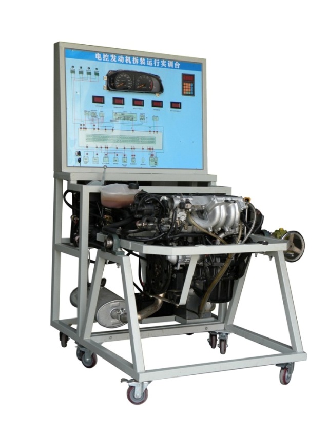 發(fā)動(dòng)機(jī)操縱運(yùn)行臺(tái):發(fā)動(dòng)機(jī)控制單元、原車線束、儀表總成、點(diǎn)火開關(guān)、整套散熱機(jī)構(gòu)、汽油箱和汽油泵總成、蓄電池、五個(gè)數(shù)字電壓表、真空壓力表及燃油壓力表、帶有完整彩色電路原理圖面板、外接式檢測(cè)端子、智能故障設(shè)置盒總成、可移動(dòng)臺(tái)架、使用說明書及實(shí)驗(yàn)指導(dǎo)書。
