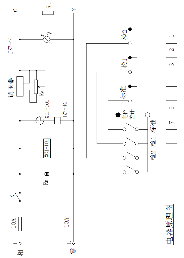 本裝置配有大功率雙向可控硅器件組裝的交流調(diào)壓器一套,調(diào)壓連續(xù)穩(wěn)定,調(diào)壓范圍為0~100V,電流最大輸出小于6A。