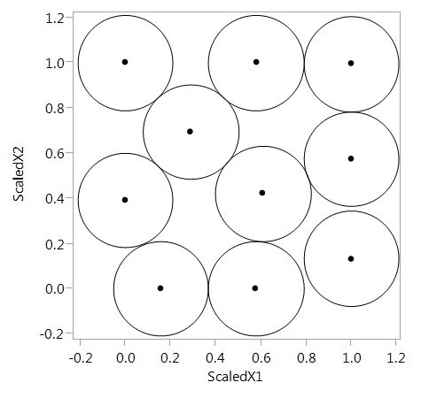 發(fā)動機實訓(xùn)臺的發(fā)動機性能發(fā)揮到極致的最佳設(shè)計。具體的實現(xiàn)手段有兩種:一種是經(jīng)典的實驗設(shè)計方法,如響應(yīng)曲面設(shè)計等(如圖四所示);另一種是高級的實驗設(shè)計方法,如空間填充設(shè)計、I最優(yōu)設(shè)計等(如圖五所示)。