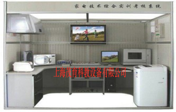 家電技術(shù)綜合實訓(xùn)系統(tǒng),家電技術(shù)綜合實訓(xùn)裝置,家電技術(shù)綜合實訓(xùn)設(shè)備通過模擬廚房的立體形式來展示各種小家電的實訓(xùn)模塊,方便學(xué)生更加直觀的去學(xué)習(xí),該房間采用鋼制網(wǎng)孔板和鋼制專用型材組接而成,安裝有自鎖式腳輪,方便移動和使用。裝置表面靜電噴塑,色彩穩(wěn)重,外表美觀大方,不易退色。裝置配有專用電源臺,裝置設(shè)計高度以人站在一級人字梯即可方便操作的高度,既安全又能使使用者感受到施工現(xiàn)場環(huán)境。橫向、叢向?qū)挾群线m,可以模擬現(xiàn)場線路的轉(zhuǎn)向布置。網(wǎng)孔板可以方便拆下,為方便隱蔽工程施工,鋼制框架仿建筑隔斷用輕鋼龍骨的加大寬度精心設(shè)計,帶有穿管孔,使用扎帶固定線管,在穿出網(wǎng)孔板時可以使用壁疏引出導(dǎo)線穿入明裝底盒。裝置設(shè)有實訓(xùn)平臺,臺面采用貼面防火板后成型制作,基材為25mm厚E1級刨花板;臺身:采用18mm三聚氰胺飾面E1級刨花板,其他部位采用2mm厚優(yōu)質(zhì)PVC封邊條,機械封邊;可開設(shè)電子電風(fēng)扇、微電腦控制電飯鍋、微波爐、電子消毒柜、全自動洗衣機常用家電結(jié)構(gòu)拆卸分析、元器件識別檢測、常見典型故障分析排除等實訓(xùn)項目。