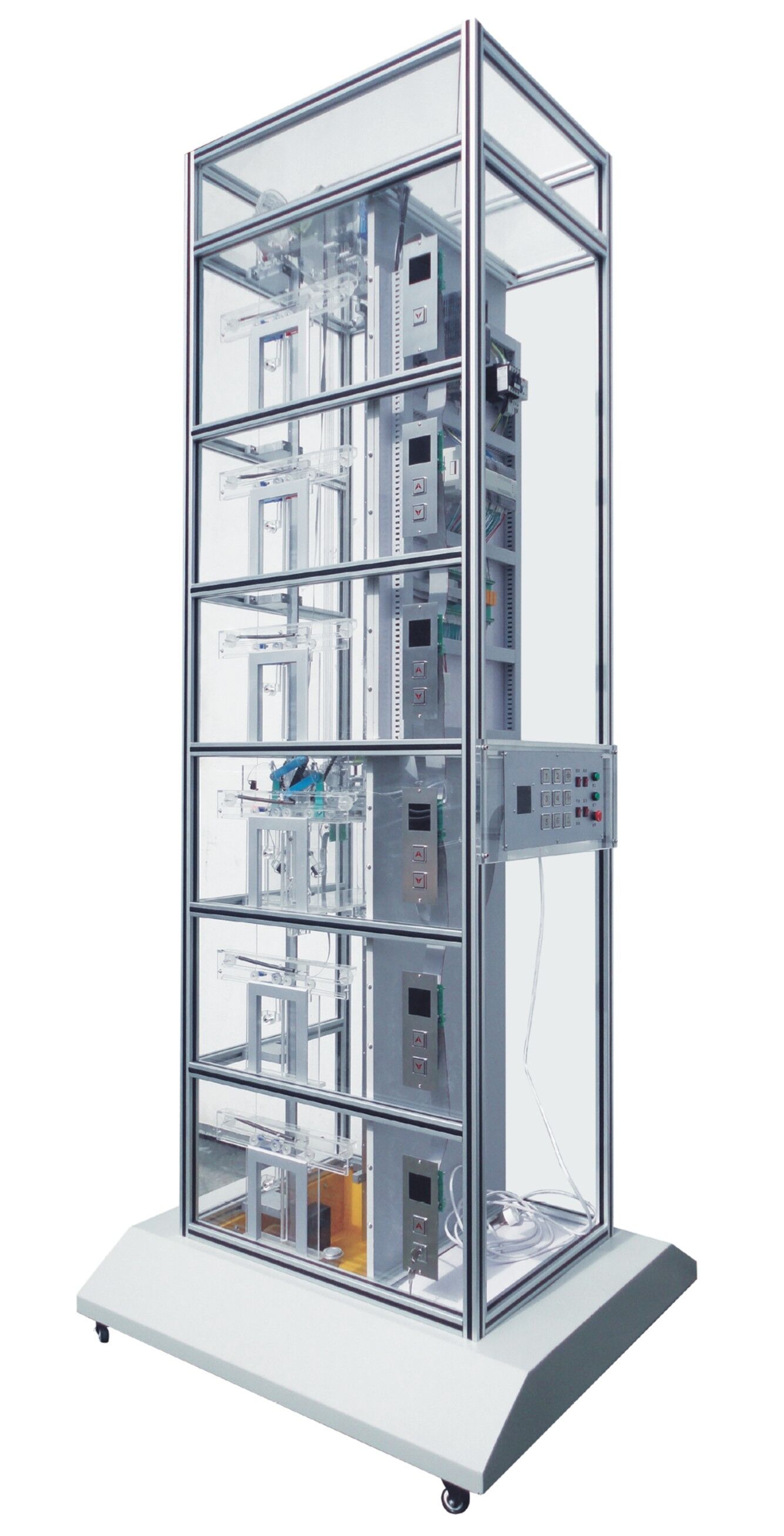 是根據(jù)最常見的升降式電梯結(jié)構(gòu),采用透明有機材料制成,其結(jié)構(gòu)與實際電梯完全相同,且?guī)缀蹙邆淞藢嶋H電梯的所有功能。為了便于教學(xué),電梯大部分部件均是采用透明有機材料制成,使得電梯的內(nèi)部結(jié)構(gòu)一目了然;同時,電梯的運行過程,以及每個動作都十分明了,且可以反復(fù)實際動手操作。使學(xué)生能夠很直觀、透徹地了解、掌握電梯的結(jié)構(gòu)及其動作原理,達到事半功倍的效果。解決了以往電梯教學(xué)中單純的理論教學(xué)方式或是參觀實際電梯時所帶來的不安全,無法全面了解其內(nèi)部結(jié)構(gòu)及運行過程等種種實際問題。