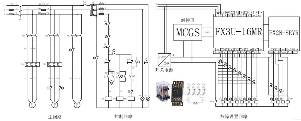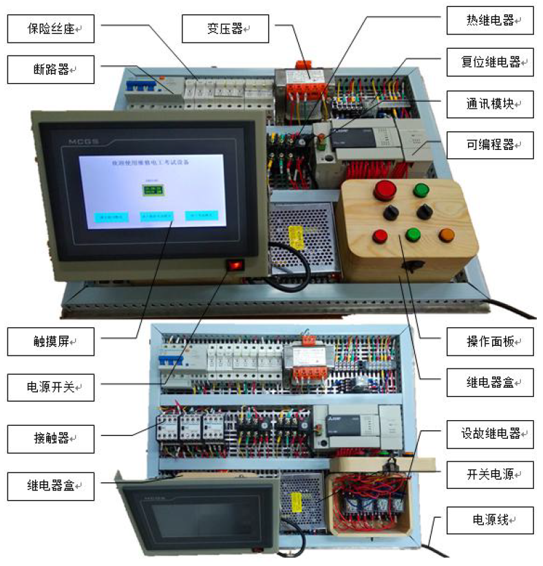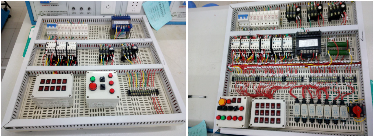 如上述回路,改造后的維修電工故障排查考核實訓裝置實物參考圖4。
