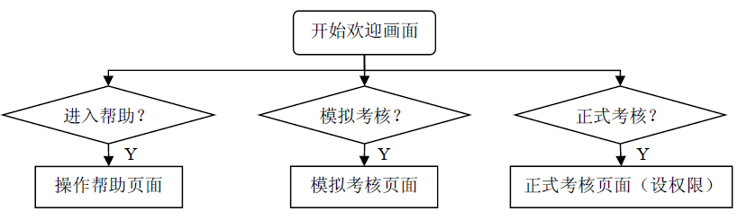 開機為歡迎界面。可選擇進入“幫助”“練習模式”和“考核模式”,如圖5,選擇后可啟動對應(yīng)的模塊功能,其中“考核模式”的進入設(shè)置有賬戶權(quán)限。