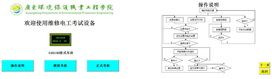 本考核實訓裝置電氣控制系統(tǒng)的軟件主要由歡迎界面、練習模式、考核模式以及附加功能四個模塊組成。