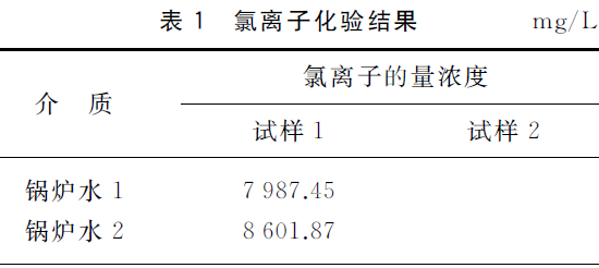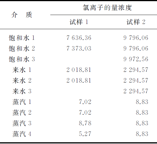 蒸汽狀態(tài)的水不含有氯離子,通過化驗飽和水及蒸汽中的氯離子的量濃度,可以得出汽中液態(tài)水的量濃度,氯離子化驗結(jié)果見表1所列。