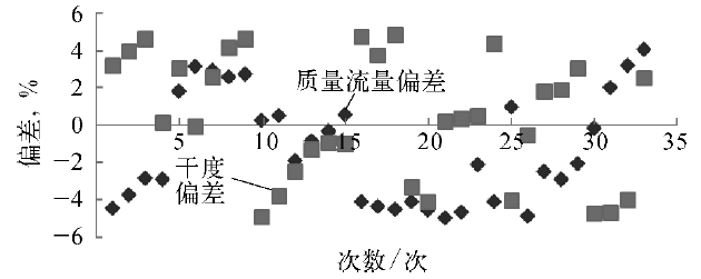 圖4 質(zhì)量流量和干度實驗結(jié)果相對偏差示意
