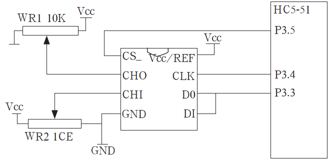 圖5 單片機與轉(zhuǎn)換器接口電路示意圖