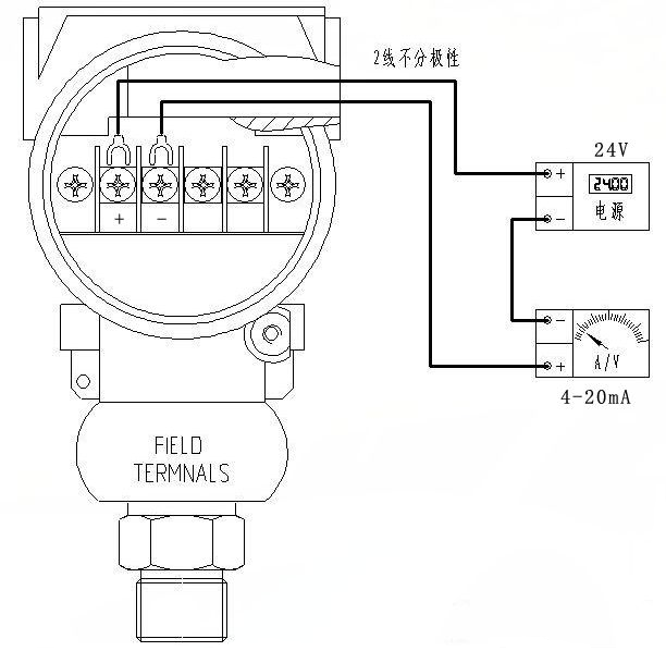一般壓力變送器4-20mA都是2線制,24V供電,輸出4-20mA電流信號,壓力變送器到現(xiàn)場后好多人不知道怎么接線,這是件很痛苦頭疼的事情,下面是壓力變送器現(xiàn)場接線。