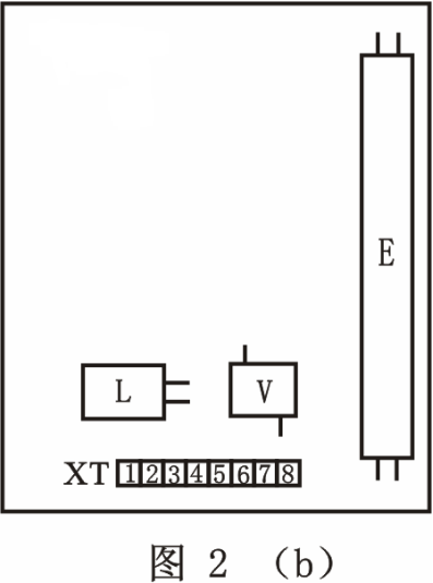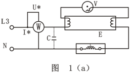 布置可參考圖21(b),操作者可按圖示位置安裝日光燈管E,鎮(zhèn)流器L,啟輝器V。接線端子板X,功率表W用實驗臺下面的功率、功率因數(shù)表;電容器C可裝在X端子板的兩個端子上。安裝完畢可按圖21(a)的電路圖進行實際接線,安裝與接線后應符合第二章2-1的要求。