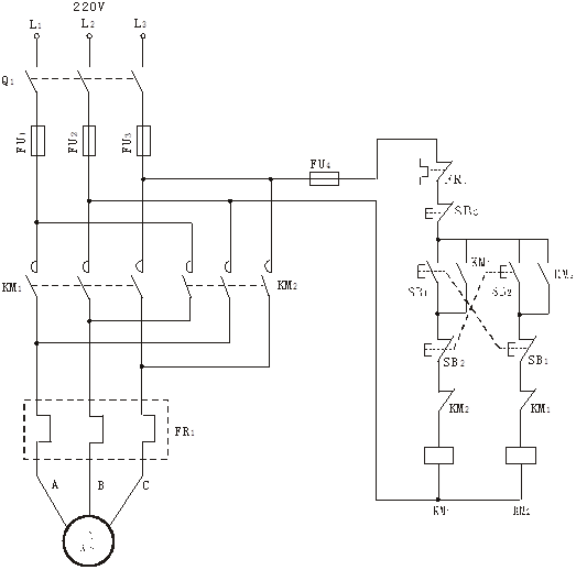 3、按鈕聯(lián)鎖正反轉控制線路: