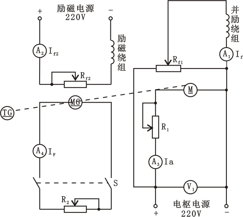 f2調至校正值,再調節(jié)M的電樞電源調壓旋鈕和MG的負載,使電動機M的U=U