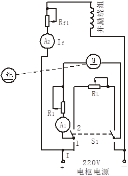 f調至最小位置。S1合向1端位置,然后合上控制屏下方右邊的電樞電源開關,使電動機起動。