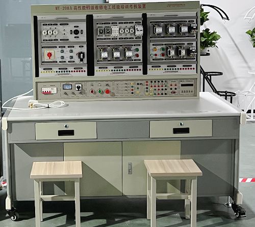 是根據(jù)勞動和社會保障部頒發(fā)的維修電工初、中級考核培訓技能內(nèi)容所要求的電氣控制線路和實用電子線路而研發(fā)的實訓裝置,通過維修電工實訓裝置的實訓技能操作,能快速掌握該課程的實用技術(shù)與操作技能。具有針對性、實用性、科學性和先進性,該維修電工裝置不僅可供學生實訓操作,也是各勞動職業(yè)技能鑒定部門、大中專院校、職校、技校初級、中級維修電工技能考核的理想設(shè)備。