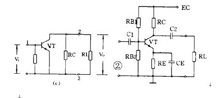 見圖 1 ( c )。電路的特點是電壓放大倍數(shù)從十幾到一百多,輸出電壓的相位和輸入電壓是相反的,性能不夠穩(wěn)定,可用于一般場合。