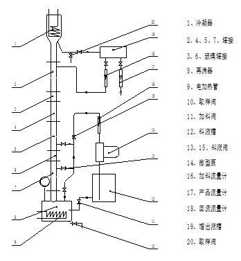 10)嚴(yán)格控制塔釜電加熱器的輸入功率,必須確保塔釜內(nèi)的料液液面不低于最低控制線(塔釜加熱管以上),以免燒壞電加熱器,在投入自動(dòng)控制后,還必須注意關(guān)閉加熱開關(guān),除非環(huán)境溫度太低,使用一組電加熱絲無法達(dá)到需要的控制溫度,方可同時(shí)使用;