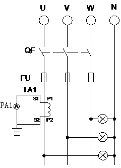 電流互感器采用一次側(cè)串入線路中的接線方式。