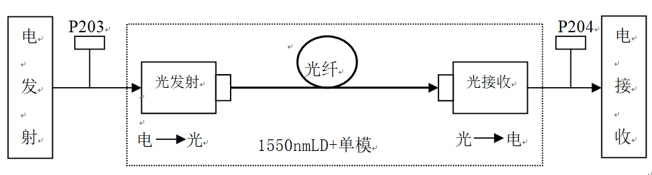 在本實(shí)驗(yàn)系統(tǒng)中,電發(fā)射部分可以是M序列,可以是各種線路編碼(CMI、5B6B、5B1P等),也可以是語(yǔ)音編碼信號(hào)或者視頻信號(hào)等,光信道可以是1550nmLD+單模光纖組成,可以是1310nm激光/探測(cè)器組成,也可以是850nmLED+多模光纖(選配)組成。本實(shí)驗(yàn)系統(tǒng)中提供的1550nmLD光端機(jī)是一體化結(jié)構(gòu),光端機(jī)包括光發(fā)射端機(jī)TX(集成了調(diào)制電路、自動(dòng)功率控制電路、激光管、自動(dòng)溫度控制等),光接收端機(jī)RX(集成了光檢測(cè)器、放大器、均衡和再生電路)。其數(shù)字電信號(hào)的輸入輸出口,都由銅鉚孔開(kāi)放出來(lái),可自行連接。一體化數(shù)字光端機(jī)的結(jié)構(gòu)示意圖如下: