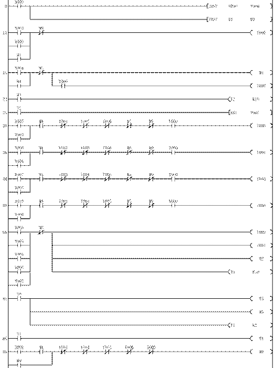 49 OR Y005 50 AND M4 51 ANI Y003 52 ANI Y004 53 ANI Y006 54 ANI M5 55 ANI M9 56 AND Y000 57 OUT Y005 58 LD X010 59 OR Y006 60 AND M4 61 ANI Y003 |