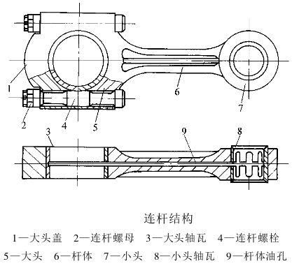 及球形等。大頭一般采用剖分結(jié)構(gòu),大瓦蓋和連桿體用連桿螺栓連接,并裝有防松裝置,內(nèi)襯以連桿軸瓦。