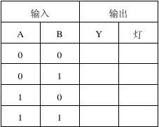 3、啟動EWB的仿真功能,按表1的輸入狀態(tài)組合將開關(guān)A、B擲于不同的位置狀態(tài),并觀察顯示燈的亮暗情況,將結(jié)果記入表中。應(yīng)的邏輯真值表中。